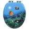 Siège WC avec couvercle à fermeture en douceur MDF Fond marinCe siège de toilette est un véritable accroche-regard dans n'importe quelle salle de bain. Il ajoute une touche d'un style intriguant à votre salle de bain et est considérablement durable. Son couvercle et son siège en MDF sont extrêmement robustes et résistants à l'usure. Les charnières sont en alliage de chrome-zinc extra fort. Ce couvercle de toilette a une fonction de fermeture en douceur, ce qui signifie qu'il se ferme lentement et silencieusement. Ce siège de WC s'adapte à toutes les cuvettes de WC courantes car la largeur des charnières peut être réglée de 12 à 20 cm.
