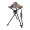 Trépied avec pied métal, assise textile. Bretelle pour le porter avec deux crochets. Patte de serrage en bas du pied. Supporte jusqu'à 100 kg. Hauteur ouvert 60 cm Camo forêt