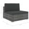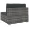 Siège central sectionnel 1 pc et coussins Résine tressée GrisCe siège central sectionnel en rotin allie style et fonctionnalité, et est conçu pour être utilisé à l'extérieur toute l'année. Grâce à la résine tressée résistante aux intempéries et à l'eau, la chaise sans accoudoirs est facile à nettoyer, résistante à l'usure et adaptée à un usage quotidien. Le siège est doté d'un cadre en acier enduit de poudre robuste, très résistant. Il est également léger et modulaire, ce qui le rend complètement flexible et facile à déplacer pour s'adapter à n'importe quelle configuration. Les coussins épais et amovibles sont très confortables. Vous pouvez le combiner avec d'autres sièges d'angle, repose-pied disponibles dans le menu déroulant et créer vos configurations de canapé de jardin personnelles ! Vous pouvez trouver des exemples dans les dernières 9 images. La livraison comprend 1 siège central, 1 coussin de siège et 1 coussin de dossier. Remarque : Nous vous recommandons de couvrir le siège sous la pluie, la neige et le gel. ,