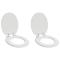 Siège de toilette à fermeture douce 2 pcs Blanc 44 x 38 cmLe siège de toilettes en MDF allie style moderne et praticité, parfait pour toute salle de bain. Grâce à sa fonction de fermeture douce, il se ferme lentement et sans bruit. Offrant confort et facilité d'utilisation, il rend vos moments au toilette agréables, que ce soit pour un passage rapide ou plus long. Cet accessoire chic est idéal pour ceux qui veulent donner un coup de frais à leur salle de bain sans se lancer dans des rénovations compliquées. Construction en MDF Fabriqué en MDF, ce siège de toilettes est résistant et stable, parfait pour une utilisation quotidienne. Ce matériau assure durabilité, évitant les remplacements fréquents et offrant un bon rapport qualité-prix. Couvercle à fermeture douce Cette fonction évite le bruit des cliquetis de siège. Le mécanisme permet une fermeture en douceur, ce qui réduit les risques de blessure et augmente la durée de vie du produit. Pratique pour les familles avec enfants, où la sécurité est primordiale. Tampons antidérapants Ces tampons gardent le siège bien en place, évitant tout glissement. Ils assurent un maximum de stabilité, que ce soit à la maison ou au travail, pour une utilisation sans souci. Fixation standard L'installation est easy grâce à un montage standard qui s'adapte à de nombreux modèles de toilettes. Quiconque peut l'installer sans aide, économisant du temps et évitant des frais supplémentaires. Entretien facile Pour un nettoyage rapide, il suffit de passer un coup d'éponge avec des produits courants. Son design facilite l'entretien et permet de garder la salle de bain propre sans y consacrer trop de temps.