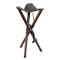 Assise en cuir pleine fleur épais et gansé. Angles triple couche pour plus de résistance. Trépied en bois vernis et articulation laiton massif. Courroie cuir de transport en bandoulière. Longueur des pieds : 65 cm, hauteur d'assise 56 cm