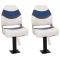 Sièges de bateau lot de 2 avec piédestal pivotant à 360°Ces sièges de bateau avec piédestal sont un choix idéal pour pêcher ou prendre un bain de soleil sur le bateau. Structure robuste : le siège de bateau est fabriqué en aluminium et le socle du siège de bateau avec siège pivotant est fabriqué en acier enduit de poudre, ce qui lui confère une bonne capacité de charge, ainsi qu'une grande robustesse et une longue durée de vie. Siège confortable : ce siège de bateau est doté d'un dossier haut avec un rembourrage en mousse de compression. Vous resterez confortable toute la journée et vous soulagerez votre dos. Conception pliable : le siège de bateau est pliable, ce qui permet de rabattre le dossier lorsqu'il n'est pas utilisé. En outre, l'inclusion d'une sangle de fixation cousue dans le siège améliore à la fois la durabilité et la commodité de transport et de stockage. Rotation libre à 360° : la plaque de base pivotante peut tourner à 360 degrés de manière flexible, douce et silencieuse. Bon à savoir : Les vis de montage pour le pivot ne sont pas incluses.