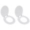 Sièges de toilette avec couvercles 2 pcs MDF BlancC'est un siège de toilette universel avec couvercle durable et charnières très résistantes, idéal pour les familles, les restaurants, les grands magasins, etc. Le couvercle et le siège en MDF assurent une rigidité, une dureté et une résistance élevées. Avec des charnières en alliage chrome-zinc très résistant et durable, ce siège de toilette est conçu pour une utilisation à long terme. Le siège de toilette s'adapte à toutes les cuvettes de toilette communes avec des charnières réglables de 12 à 20 cm de large. La conception simple facilite également l'intégration dans tous les styles de décoration de salle de bain. De plus, il est simple à installer et à nettoyer. La livraison inclut 2 abattants WC.