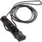 Ce sifflet pour chien en corne de buffle mesure 7,6 cm de long et est livré, comme illustré, avec un cordon en cuir noir (longueur : 47 cm environ). Un côté offre la fonction trille, l'autre côté un sifflement aigu.