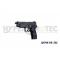 Le Sig P226 est doté d'un levier de sécurité avec fonction decocking, permettant de rabattre le chien sans tirer à tout moment. Le fonctionnement en simple ou double action reproduit fidèlement le véritable P226. Les organes de visée, une hausse fixe et un guidon à queue d'aronde, forment un système 3 points. La culasse mobile arbore fièrement l'ancre des Seals, et le modèle tactique dispose d'un canon fileté en M12x1 et d'un rail picatinny pour les accessoires tactiques.