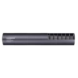 Incroyablement performant – avec ses 70 mm de diamètre externe et son volume interne élevé. Cette combinaison permet au HAUSKEN WD 306 XTREM MKII d’être un silencieux de premier choix, même avec les gros calibres utilisés dans les armes de tir longue distance. Une répartition équilibrée entre la partie avant et arrière du silencieux permet d’obtenir un espace important grâce à la partie arrière qui vient englober le canon. La chambre arrière vient recouvrir le canon sur 162 mm. Ce silencieux ne convient pas aux armes disposant de visée ouverte. Diamètre extérieur maximal du canon 30mm. Capacité de réduction env. 36-42 dB**