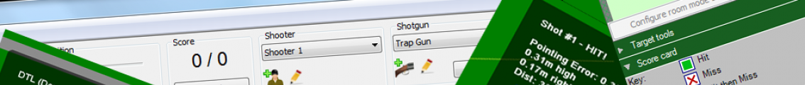Vision d'un paysage type balltrap ou chasse, cabane lanceur, mais surtout : resultat en temps reel du tir avec position de la gerbe, distance de tir, ecarts par rapport au plateau, temps de vol du plateau...
