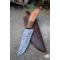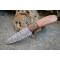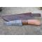 Skinner Bowie lame damas - Longueur du manche 11cm - Longueur de la lame 11cm - Lame en Acier damas 256 couches - Lame de type drop point - Construction d'une seule pièce - Full tang - Plaquettes du manche en bois - Mitres en bois - Fabrication Artisanale - Les dessins de la lame sont uniques comme une empreinte - Etui simili cuir
