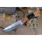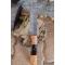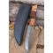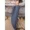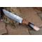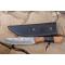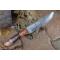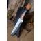 Skinner Bowie lame damas - Longueur du manche 11cm - Longueur de la lame 12.5cm - Lame en Acier damas 256 couches - Lame de type drop point - Construction d'une seule pièce - Full tang - Plaquettes du manche en bois - Mitres en bois - Fabrication Artisanale - Les dessins de la lame sont uniques comme une empreinte - Etui simili cuir