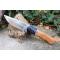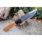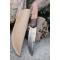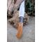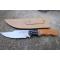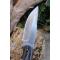 Skinner Bowie lame damas - Longueur du manche 12.5cm - Longueur de la lame 11.5cm - Lame en Acier damas 256 couches - Lame de type baio - Construction d'une seule pièce - Full tang - Plaquettes du manche en bois - Mitres en bois - Fabrication Artisanale - Les dessins de la lame sont uniques comme une empreinte - Etui simili cuir