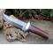 Skinner-Bowie Couteau de Chasse Damas Lame 256 Couches Manche Bois Acier Fabric Artisanale Etui Cuir