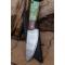 Skinner Bowie lame damas - Longueur du manche 11cm - Longueur de la lame 12cm - Lame en Acier damas 256 couches - Beaux dessins du damas - Lame de type drop point - Construction d'une seule pièce - Full tang - Plaquettes du manche en résine - Trou pour dragonne - Mitres en résine - Fabrication Artisanale - Les dessins de la lame sont uniques comme une empreinte - Etui simili cuir