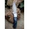 Skinner Bowie lame damas - Longueur du manche 11cm - Longueur de la lame 9cm - Lame en Acier damas 256 couches - Beaux dessins - Lame de type drop point - Construction d'une seule pièce - Full tang - Plaquettes du manche en bois - Mosaic pins - Mitres en acier - Fabrication Artisanale - Les dessins de la lame sont uniques comme une empreinte - Etui simili cuir