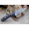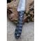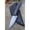 Longueur du manche 10cm - Longueur de la lame 8cm - Lame en Acier damas 256 couches - Lame de type trailing point - Construction d'une seule pièce - Full tang - Plaquettes du manche en bois Black 3D - Fabrication Artisanale - Les dessins de la lame sont uniques comme une empreinte - Etui simili cuir