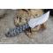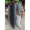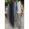 Longueur du manche 9.5cm - Longueur de la lame 9cm - Lame en Acier damas 256 couches - Lame de type clip point - Construction d'une seule pièce - Full tang - Plaquettes du manche en bois Black/White 3D - Fabrication Artisanale - Les dessins de la lame sont uniques comme une empreinte - Etui simili cuir