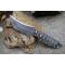Skinner Couteau de Chasse Damas Lame 256 Couches Manche Bois Black/White 3D Fab Artisanale Etui Cuir