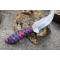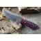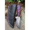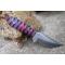 Longueur du manche 9cm - Longueur de la lame 8.5cm - Lame en Acier damas 256 couches - Lame de type clip point - Construction d'une seule pièce - Full tang - Plaquettes du manche en bois blue/red 3D - Fabrication Artisanale - Les dessins de la lame sont uniques comme une empreinte - Etui simili cuir