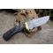 Skinner Couteau de Chasse Damas Lame 256 Couches Manche Bois Laiton Fabric Artisanale Etui Cuir