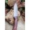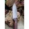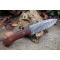 Skinner Bowie lame damas - Longueur du manche 11.5cm - Longueur de la lame 11cm - Lame en Acier damas 256 couches - Beau dessins damas - Lame de type drop point modifié - Construction d'une seule pièce - Full tang - Plaquettes du manche en bois rosewood - Mosaic pins - Trou pour dragonne - Fabrication Artisanale - Les dessins de la lame sont uniques comme une empreinte - Etui simili cuir