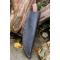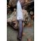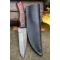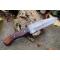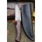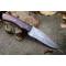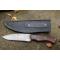 Skinner Bowie lame damas - Longueur du manche 11cm - Longueur de la lame 11.5cm - Lame en Acier damas 256 couches - Lame de type drop point modifié - Construction d'une seule pièce - Full tang - Plaquettes du manche en bois rosewood - Fabrication Artisanale - Les dessins de la lame sont uniques comme une empreinte - Etui simili cuir