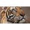 Skinner Couteau de Chasse Damas Lame 256 Couches Manche Bois Tigre Fabric Artisanale Etui Cuir