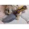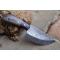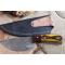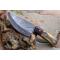 Skinner Bowie lame damas - Longueur du manche 8cm - Longueur de la lame 9cm - Lame en Acier damas 256 couches - Beaux dessins - Lame de type drop point - Construction d'une seule pièce - Full tang - Plaquettes du manche en bois - Mitres en bois - Fabrication Artisanale - Les dessins de la lame sont uniques comme une empreinte - Etui simili cuir