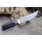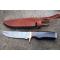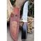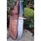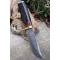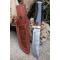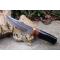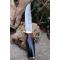 Skinner Bowie lame damas - Longueur du manche 11.5cm - Longueur de la lame 13.5cm - Lame en Acier damas 256 couches - Lame de type clip point - Manche en corne & bois - Garde en laiton - Pommeau en acier - Fabrication Artisanale - Les dessins de la lame sont uniques comme une empreinte - Etui cuir avec insert façon crocodile
