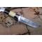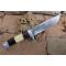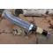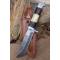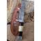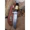 Skinner Bowie lame damas - Longueur du manche 13cm - Longueur de la lame 15cm - Lame en Acier damas 256 couches - Lame de type drop point - Manche en os & bois - Garde en nickel - Pommeau en nickel - Fabrication Artisanale - Les dessins de la lame sont uniques comme une empreinte - Etui cuir avec insert façon peau de croco