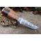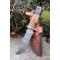 Skinner Bowie lame damas - Longueur du manche 10cm - Longueur de la lame 13cm - Lame en Acier damas 256 couches - Beaux dessins - Lame de type harpoon - Manche en bois - Garde en damas 256 couches - Pommeau en acier - Fabrication Artisanale - Les dessins de la lame sont uniques comme une empreinte - Etui cuir