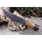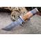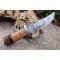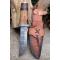 Skinner Couteau de Chasse Damas Lame & Garde 256 Couches Manche Bois Fabric Artisanale Etui Cuir