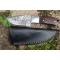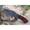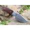Longueur du manche 9.5cm - Longueur de la lame 8.5cm - Lame en Acier damas 256 couches - Lame de type drop point - Construction d'une seule pièce - Full tang - Plaquettes du manche en bois - Trou dans le manche pour dragonne - Mitres en acier - Fabrication Artisanale - Les dessins de la lame sont uniques comme une empreinte - Etui simili cuir