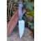Longueur du manche 12.5cm - Longueur de la lame 12cm - Lame en Acier damas 256 couches - Lame de type drop point - Construction d'une seule pièce - Full tang - Fine lame idéal pour la cuisine mais suffisament solide pour couper des branches - Plaquettes du manche en bois d'olivier - Trou dans le manche pour dragonne - Fabrication Artisanale - Les dessins de la lame sont uniques comme une empreinte - Etui simili cuir - Idéal pour les sorties rando avec repas sur place