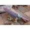 Longueur du manche 11.5cm - Longueur de la lame 16cm - Lame en Acier damas 256 couches - Lame de type drop point - Construction d'une seule pièce - Full tang - Fine lame idéal pour la cuisine - Plaquettes du manche en bois de rose - Mitres en résine façon marbre - Fabrication Artisanale - Les dessins de la lame sont uniques comme une empreinte - Etui simili cuir - Idéal pour les sorties rando avec repas sur place