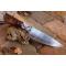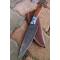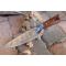 Skinner Couteau de Rando Cuisine Damas Lame 256 Couches Manche Bois/Résine Fab Artisanale Etui Cuir
