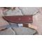 Longueur du manche 12.5cm - Longueur de la lame 12cm - Lame en Acier damas 256 couches - Lame de type trailing point - Construction d'une seule pièce - Full tang - Fine lame idéal pour la cuisine - Plaquettes du manche en bois de rose & olivier - Mitres en résine façon marbre - Fabrication Artisanale - Les dessins de la lame sont uniques comme une empreinte - Etui simili cuir - Idéal pour les sorties rando avec repas sur place