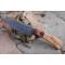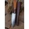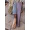 Longueur du manche 11cm - Longueur de la lame 12cm - Lame en Acier damas 256 couches - Lame de type drop point - Construction d'une seule pièce - Full tang - Fine lame idéal pour la cuisine mais suffisament solide pour couper des branches - Plaquettes du manche en bois d'olivier - Mitres en résine - Fabrication Artisanale - Les dessins de la lame sont uniques comme une empreinte - Etui simili cuir - Idéal pour les sorties rando avec repas sur place