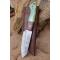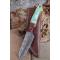 Skinner Couteau de Rando Cuisine Damas Lame 256 Couches Manche Bois/Résine Fab Artisanale Etui Cuir