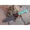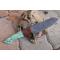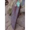 Longueur du manche 12cm - Longueur de la lame 11.5cm - Lame en Acier damas 256 couches - Lame de type Tanto Reverse - Construction d'une seule pièce - Full tang - Fine lame idéal pour la cuisine mais suffisament solide pour couper des branches - Plaquettes du manche en résine - Mitres en bois - Fabrication Artisanale - Les dessins de la lame sont uniques comme une empreinte - Etui simili cuir - Idéal pour les sorties rando avec repas sur place