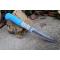 Longueur du manche 12.5cm - Longueur de la lame 13cm - Lame en Acier damas 256 couches - Lame de type trailing point - Construction d'une seule pièce - Full tang - Fine lame idéal pour la cuisine - Plaquettes du manche en résine - Fabrication Artisanale - Les dessins de la lame sont uniques comme une empreinte - Etui simili cuir - Idéal pour les sorties rando avec repas sur place