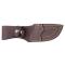 La lame blanche au profil Skinner est conçue pour des coupes nettes et précises, tandis que le tranchant lisse garantit une performance optimale. Le couteau est doté d'une ouverture fixe avec demi-garde, assurant une sécurité accrue lors de son utilisation. Un étui en cuir accompagne le couteau, facilitant son transport et sa protection.