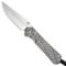 Longueur totale (mm) : 177 Longueur de la lame (mm) : 76 Largeur de Lame : 23 Epaisseur de la lame (mm) : 3 Matériau de la lame : Magnacut Matériau du manche : Titane Glassblasted Système : Framelock Type d'étui : Clip Poids (gr) : 85 Pays d'origine : Etats-Unis