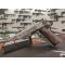 Ces écailles se retrouvent sur les plaquettes en bois de l'arme. Joliment travaillées, elles présentent une teinte chaude tirant sur le orange et une netteté de réalisation impressionnante. Elles portent fièrement le "E" emblématique de cette nouvelle série de 1911 Smith & Wesson.