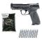 Avec des dimensions, des commandes et un recul fidèles à l'original, la manipulation de l'arme à feu réelle est particulièrement réaliste, sans utiliser de munitions létales. Le M&P9 M2.0 T4E utilise des munitions de craie, de couleur, en caoutchouc ou au poivre de calibre .43. Le chargeur peut contenir huit de ces balles et la capsule de CO2 propulsive.