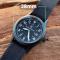 - Devant noir. - Caractéristiques de précision mouvement de quartz japonais - Secondes, date, heure militaire de 12/24 heures - Mains et nombres lumineux, - Résistant à l'eau jusqu'à 30 mètres et est livré avec trois bandes de toile renforcée interchangeables.