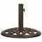 Socle de parasol Bronze 40x40x32 cm FonteCe socle de parasol solide sert de base ferme et robuste pour votre parasol et pour le maintenir en place. Le matériau en fonte durable assure une excellente stabilité. L'adaptateur fourni convient aux poteaux de parasol avec un diamètre de 35, 38 ou 48 mm. Le motif floral à rouleau détaillé et charmant va ajouter un accent chic dans tout jardin ou espace extérieur.
