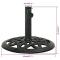 Caractéristiques techniques : Couleur : vert Matériaux : fonte Dimensions hors tout : 40 x 32 cm Diamètre du tuyau intérieur en plastique : 35 mm Diamètre intérieur de l'anneau de support : 40 mm Avec un adaptateur pour poteaux de parasol ayant un diamètre de 35/38/48 mm