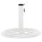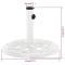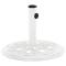 Caractéristiques techniques : Couleur : blanc Matériaux : fonte Dimensions hors tout : 44 x 31 cm Diamètre du tuyau intérieur en plastique : 35 mm Diamètre intérieur de l'anneau de support : 40 mm Adaptateur pour poteaux de parasol : 35/38/48 mm