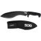 Entre courte machette et gros poignard, l'arme est légère, très maniable et efficace.