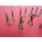 Ensemble de 16 Soldats de plomb 1/2 rond de bosse Jouets 13 soldats, 1 joueur de trompette, 1 joueur de tambour et un cavalier (manque un bras) avec cheval. Bon état.
