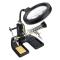 Avec le modèle CP-50UK SolderMag de la Série PRO, la société Carson Optical fut créé une station particulièrement adaptée aux travaux de soudure. Cette station comprend les éléments suivants : une loupe sur pied d'un grossissement de 1,5x avec une petite lentille incorporée d'un grossissement de 4,5x, un support pour le placement du fer à souder et un dispositif pour le déroulement de la bobine de soudure. En outre, le modèle SolderMag est équipé d'une fonction éclairage par LED d'une très grande intensité lumineuse avec un ensemble de 16 lampes LED. Tout simplement branchez la station de soudure dans une fiche appropriée par le cordon d'alimentation (inclus dans la livraison) ou opérez la station de soudure à l'aide de quatre piles AA (non comprises dans la livraison).